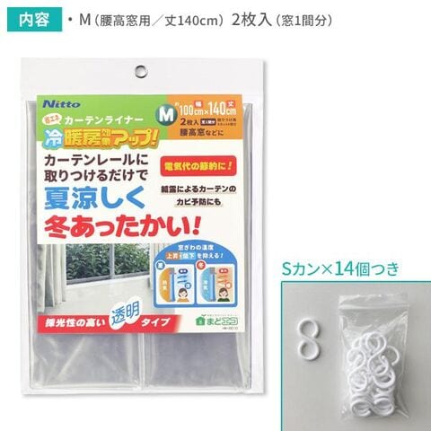 ニトムズ 寒さ対策 省エネ カーテン ライナー M(腰高窓用・丈140cm) 透明 2枚入 | 冷気 遮断 窓 断熱 カーテンライナー 冬 シート ビニール シート 無地 あったか 部屋 保温 温度 キープ 暖房 節約 グッズ