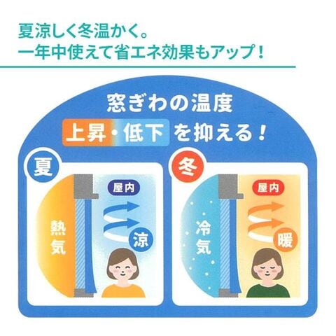 窓からの冷気・熱気を遮断冬は外気で冷えた窓ガラスからの空気を遮断、夏は外気で熱くなった窓ガラスからの空気を遮断することで、室内の温度が低下・上昇するのを防ぎます。
