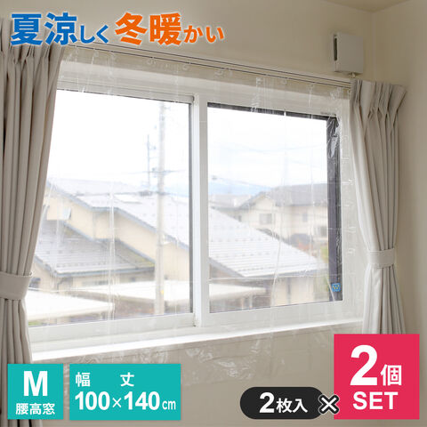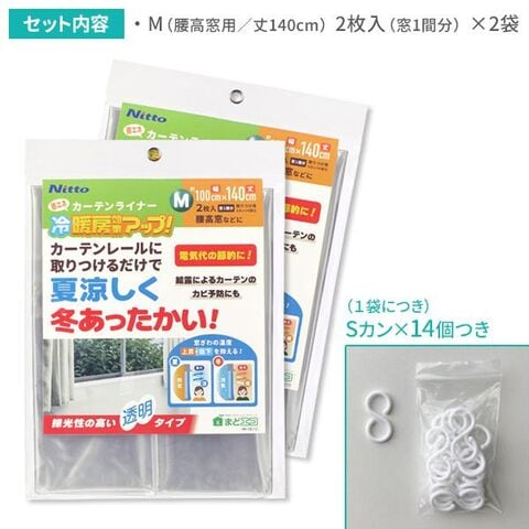 ニトムズ 寒さ対策 省エネ カーテン ライナー M(腰高窓用・丈140cm) 透明 2枚入 ×2個セット | 冷気 遮断 窓 断熱 カーテンライナー 冬 シート ビニール シート 無地 あったか 部屋 保温 温度 キープ 暖房 節約 グッズ