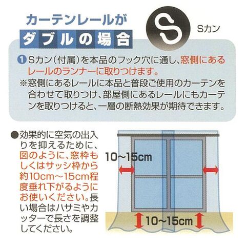 サッシ枠から10~15cm垂らして使うと効果的。カーテンだけでは防ぎきれない窓からの冷気・熱気を抑えます。