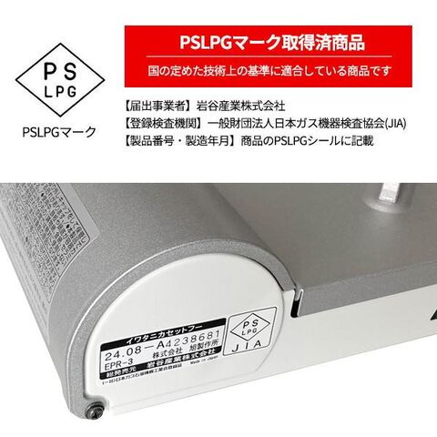 PSマークの種別:種別/PSLPG 届出事業者名/株式会社旭製作所 登録機関名称/日本ガス石油機器検査協会
