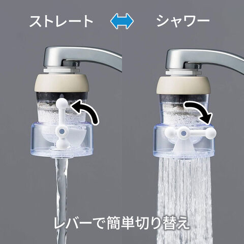 泡沫水栓に取付けるだけでゴミや鉄サビを除去できる、シャワー切替機能付きの浄水器。