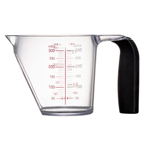 目盛が2色(赤とシルバー)だから、量る液体が薄い色でも濃い色でも見える!