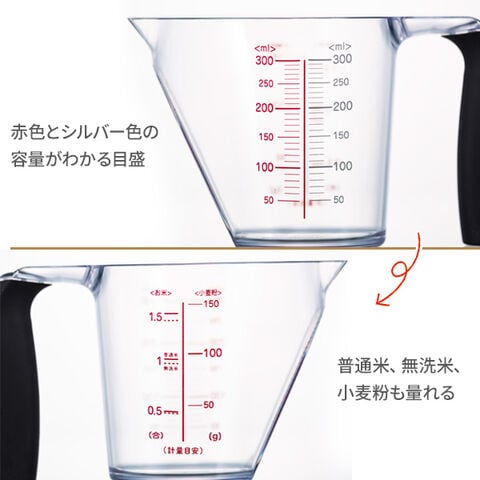 貝印 Kai Kitchen 上から量れる計量カップ 300ml DH-8127 | 計量 カップ 日本製 上から見やすい 食洗機対応 メジャーカップ 2色のメモリ 樹脂製 見やすい 粉もの 計量 キッチン用品