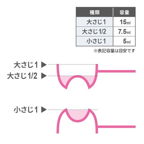 スプーンの表と裏で、大さじ・大さじ1/2・小さじを計ることができます。