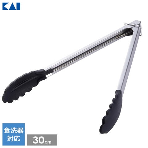 貝印 Kai Kitchen シリコーントング 30cm DH-8085 | 万能トング シリコン つかむ 調理 盛り付け キズつけにくい ストッパー付き 食洗機対応 炒め物 パスタ 麺 キッチン用品