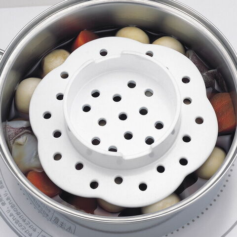 蒸し器としても落し蓋としても使えるセラミック製の目皿。