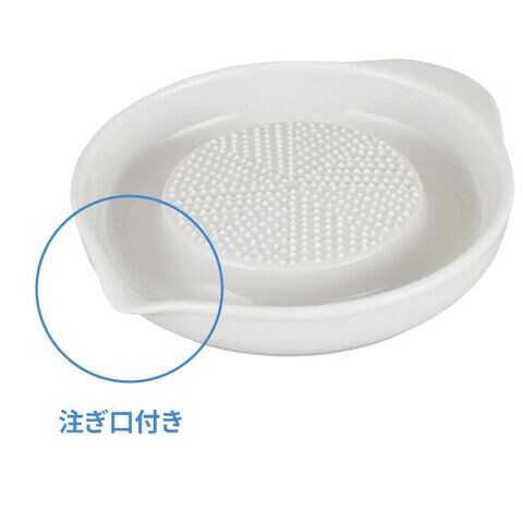 きめ細やかな仕上がりになる、注ぎ口付きのセラミック製おろし器。