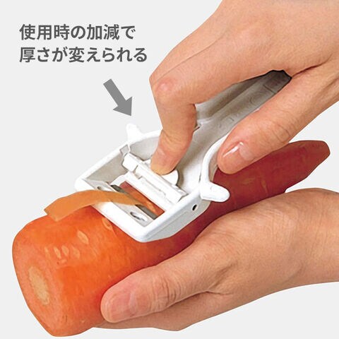 ニンジンやジャガイモの薄むきも、大根や里芋の厚むきも、これ一つでできます。