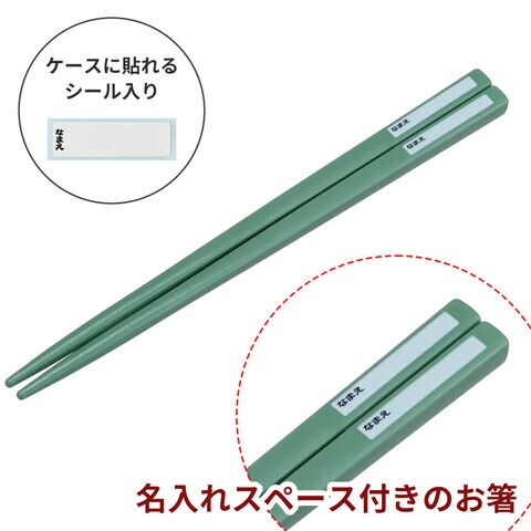 名前を入れられるお箸には名前を入れられるスペースがあり、箸箱用の名前シールも付いています。