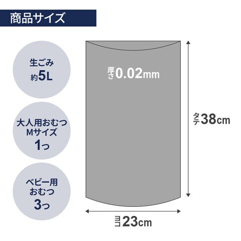 1枚あたりのご使用目安生ごみ…約5L、ベビー用オムツ…3つ、大人用おむつMサイズ…1つ。