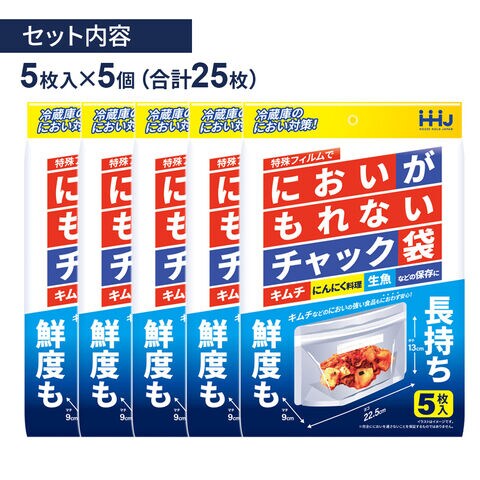 ニオイが強い食品の保存に適した、においがもれないチャック袋【5個セット】。