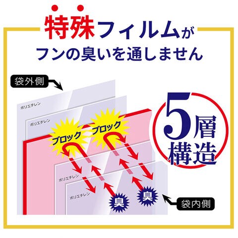 特殊フィルムがイヤな臭いを通さない5層構造の特殊フィルムがイヤな臭いを通しません。