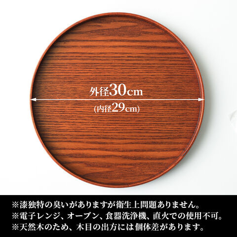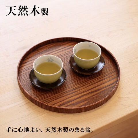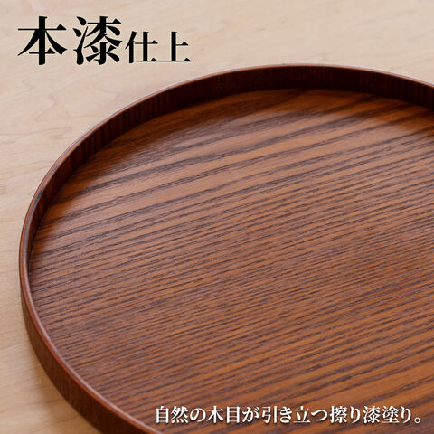 木製丸盆 スリ漆塗 30cm | お盆 トレイ 和風 天然木 丸い おぼん 木目 本漆 摺り漆 茶盆 日本茶