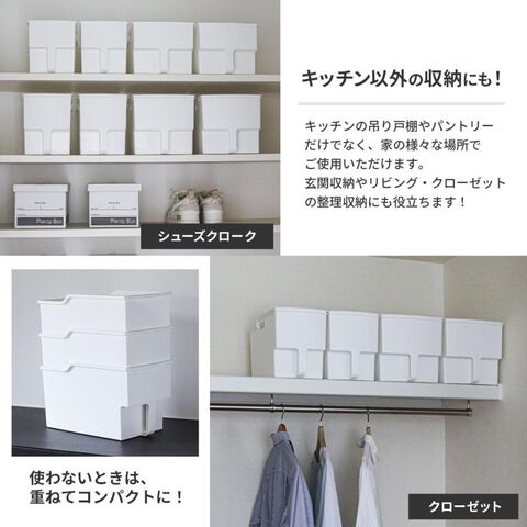 吊り戸棚やパントリーに隙間なく並べてスッキリ!食品のストックやお弁当箱・水筒・製菓用品等を仕分けしてスッキリ収納できます。
