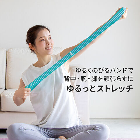 ゆるくのびるバンドで、手軽に全身を「ながら」ストレッチできます。
