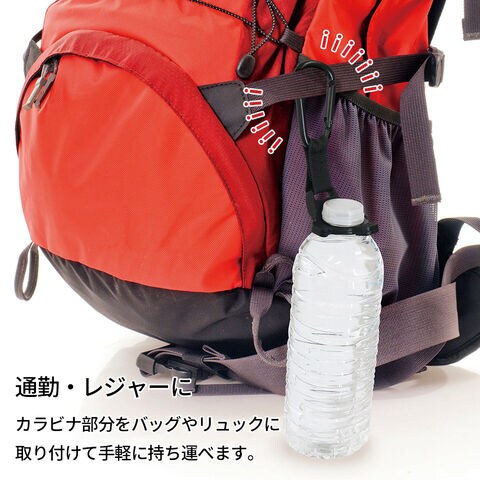 通勤・レジャー・アウトドアにカラビナ部分をバッグやリュックなどに取り付けて、通勤やレジャー、アウトドアに手軽にペットボトルを持ち運べます。
