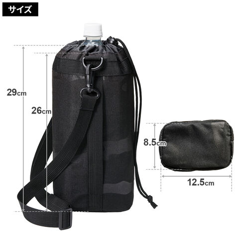 ボトルカバー ペットボトルカバー Camo(ショルダーベルト付) 1.5~2L用 ブラック P-3644 | 保冷 保温 ペットボトルカバー アウトドア BONTE スポーツ 弁当 レジャー 外出 肩ひもつき 持ち手つき 暑さ対策 肩掛け 斜めがけ 通学 部活