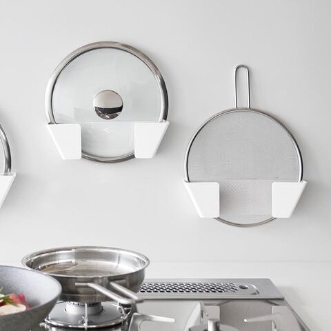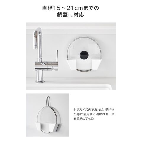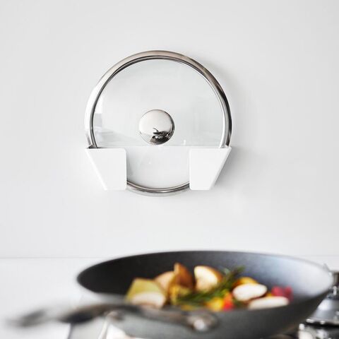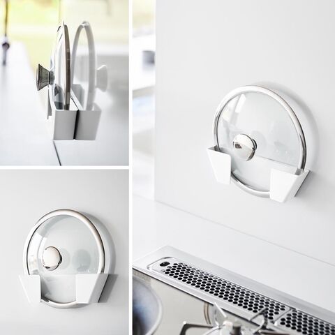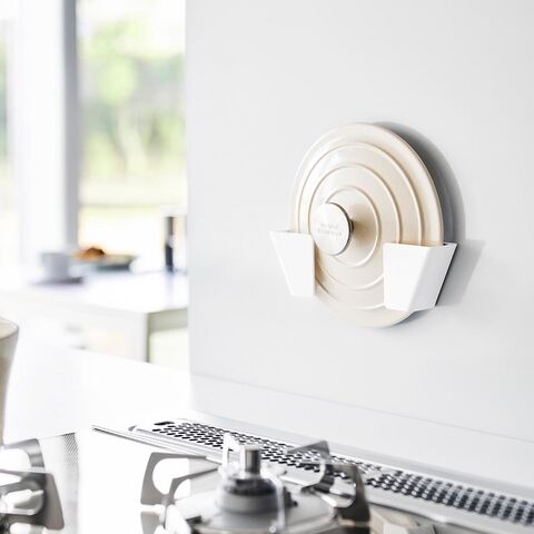 山崎実業 Plate プレート フィルムフック鍋蓋ホルダー S ホワイト 1559 | 鍋フタ 収納 フタ置き 一時置き 浮かせる スタンド 鍋ふた 蓋 キッチンパネル 貼り付け キッチン 台所 白 シンプル