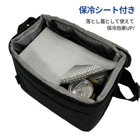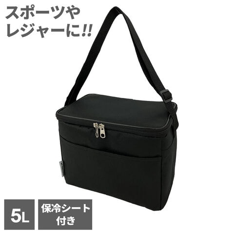 クーラーバッグ 5L ブラック U-Q1118 | レジャーバッグ 保冷 ペットボトル 500ml 4本 缶 350ml 6本 ポケットつき 折りたたみ コンパクト 染みにくい スポーツ 運動会 キャンプ