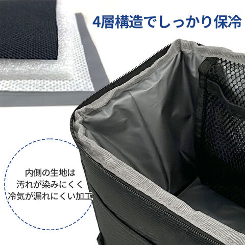 保冷剤ポケット付き内側には保冷剤を入れるメッシュポケット付き。