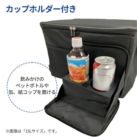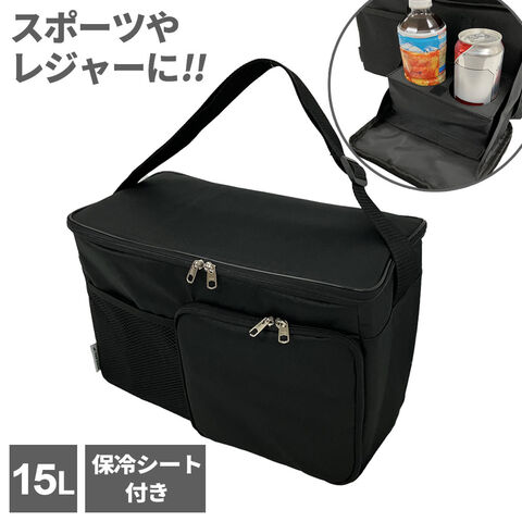 クーラーバッグ 15L ブラック U-Q1119 | レジャーバッグ 保冷 ペットボトル 500ml 14本 缶 350ml 19本 ポケットつき カップホルダーつき 折りたたみ コンパクト 染みにくい スポーツ 観戦 運動会 キャンプ