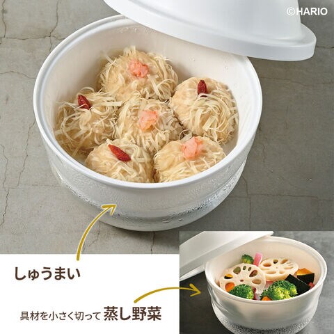 HARIO ハリオ ガラスのレンジ蒸し器 XMK-120-W | 電子レンジ 調理器 蒸し料理 ガラス 中身が見える レンチン 食洗機OK 蒸し鶏 シュウマイ 水切りヨーグルト 蒸し野菜 日本製 おしゃれ