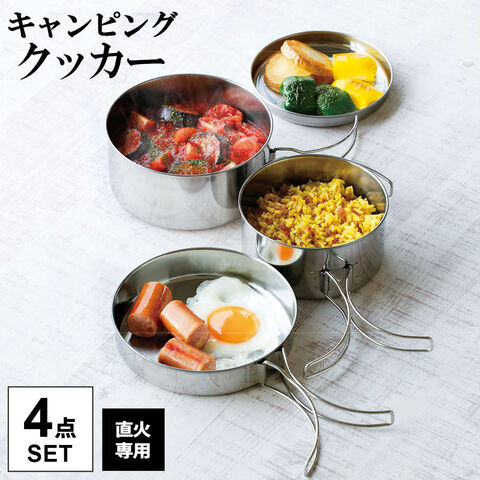 アウトドアや災害時の備えに便利な、重ねて収納できるクッカー4点セット。