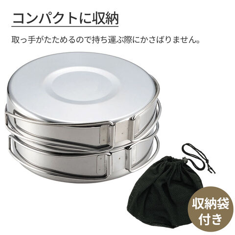 スタッキングしてコンパクトに取っ手がたため、コンパクトに重ねて収納できるので、持ち運びの際にかさばりません。
