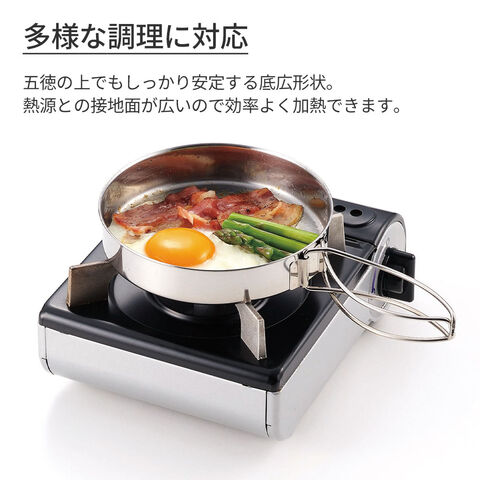 アウトドア GoGoキャンプメシ キャンピングクッカー 4点セット GO-12 | 鍋 フライパン ステンレス 収納袋付き 調理器具 直火専用 セット コンパクト 小型 防災 災害 アウトドア 少人数 登山 釣り