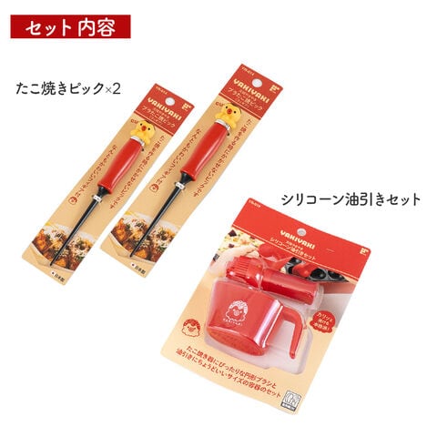 耐熱樹脂製のたこ焼きピック×2本・シリコーンブラシの油引きセットの2種類。