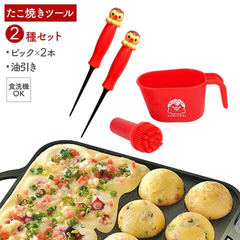 元祖やきやき たこ焼きツール 2種セット たこ焼きピック×2本・油引き | タコ焼き 道具 セット 返し ピン プラスチック 傷つきにくい フィギュア たこ焼き器 プレート 家庭用 ホットプレート おうち タコパ たこパ YR-014/YR-019 YAKIYAKI