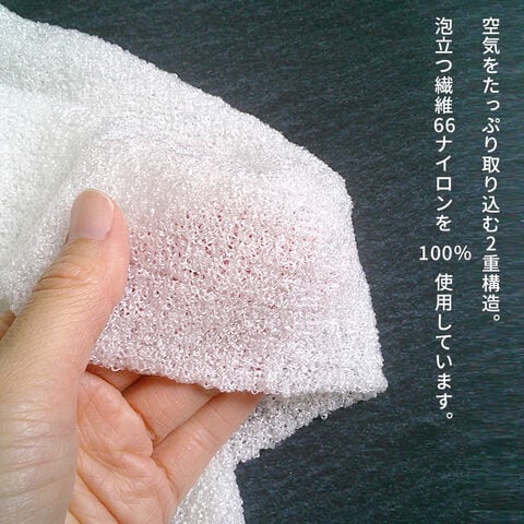 きめ細やかなもちふわ泡泡立つ繊維66ナイロンを100%使用しています。
