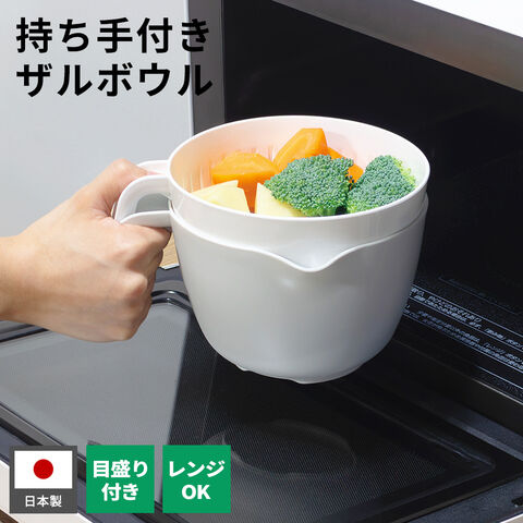 レンジで使える持ち手付ザルボウル | ザル ボウル セット 日本製 電子レンジ対応 持ち手付き おしゃれ かわいい 重ねて収納 スタッキング コンパクト ザルボウル コランダー 調理器具 キッチン用品