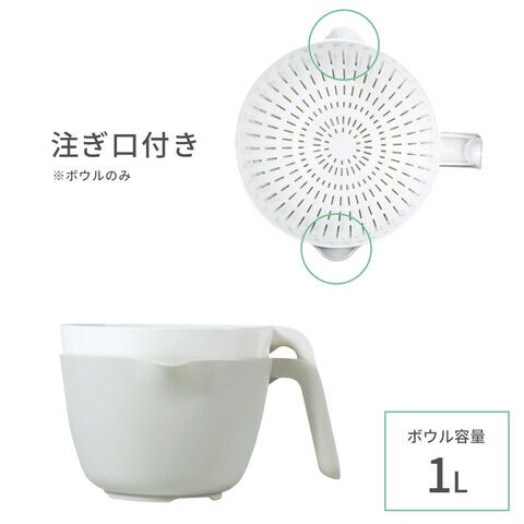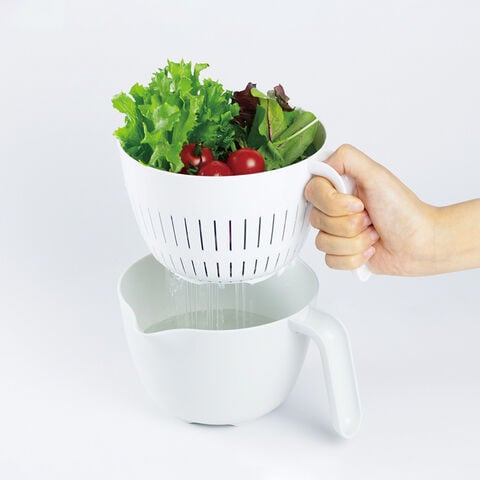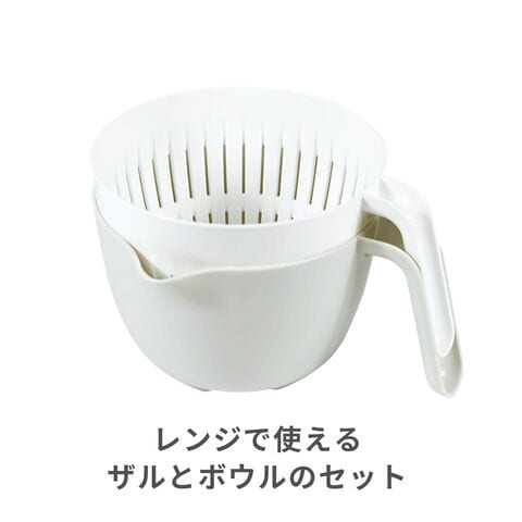 電子レンジで使える、持ち手付きザルとボウルのセット。