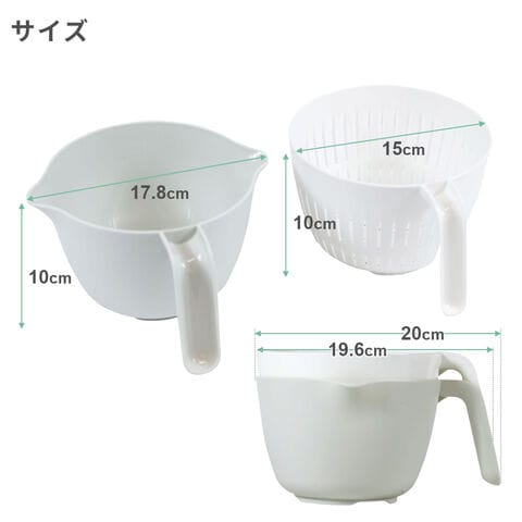 各サイズ(約):ザル/幅19.6×奥行15×高さ10cm ボウル/幅20×奥行17.8×高さ10cm