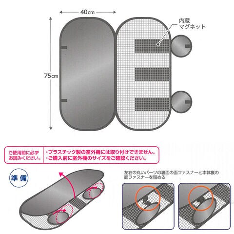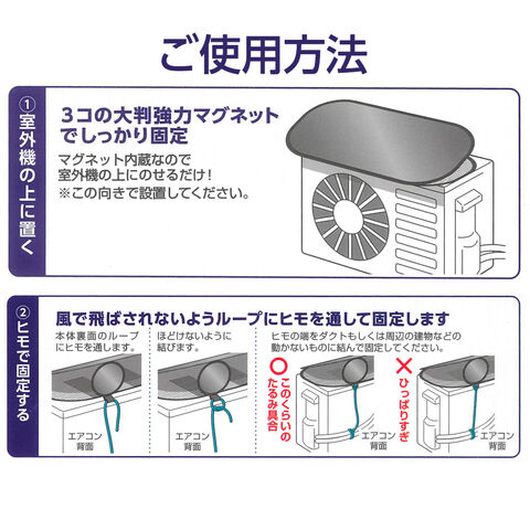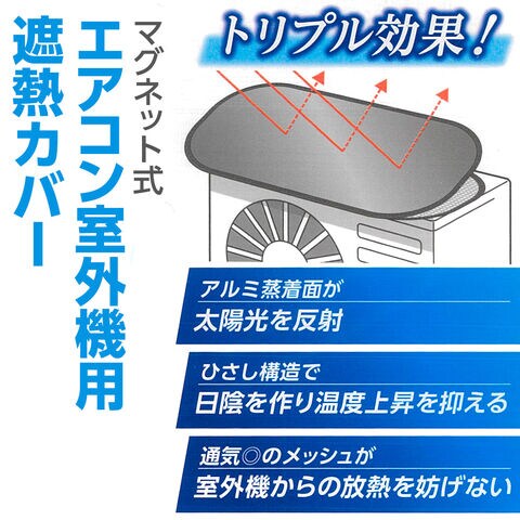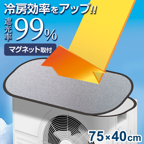 ワイヤー式エアコン室外機カバー 75×40cm HN-095 | 室外機カバー 節電対策 エアコン 日除け マグネット式 省エネ グッズ 冷房 効率 アップ アルミ蒸着 メッシュ 遮熱 電気代カット エコ 暑さ 対策 断熱材 カバー 屋根 熱中症対策グッズ