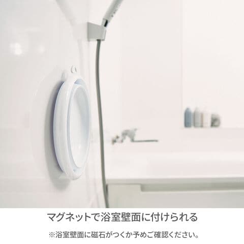 マグネット付き底にマグネットが付いており、浴室壁面などにくっつけて収納できます。