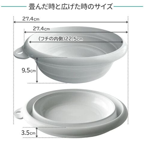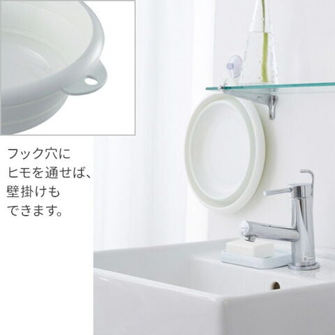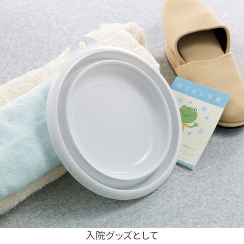おりたためる湯おけ(マグネット付) 2.5L ホワイト I-637 | 折りたたみ 磁石 ソフト やわらか素材 畳んで収納 壁掛け のばして使う 洗面器 洗濯 たためる 湯桶 洗い物 携帯できる キャンプ バーベキュー 入浴車 入浴サービス 入院 療養