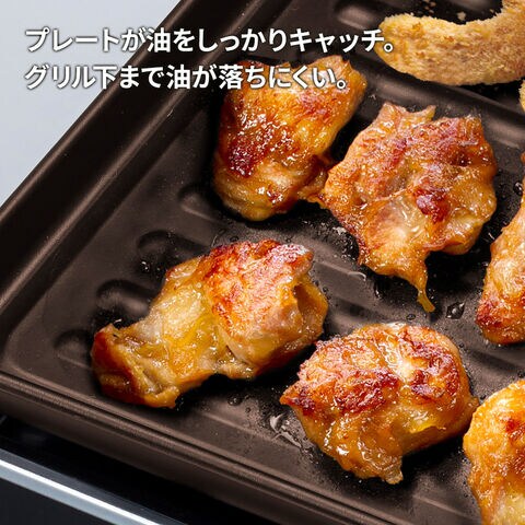 プレートが油をしっかりキャッチプレートが油をしっかりキャッチしてくれるので、グリル下まで油が落ちにくく、お手入れが簡単にできます。