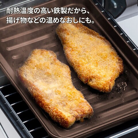 耐熱温度の高い鉄製だから、揚げ物などの温めなおしや焼物料理に最適です。