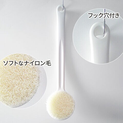 カーブのついた取っ手柄に丸みがついているので、手の届きにくい背中もラクに洗えます。