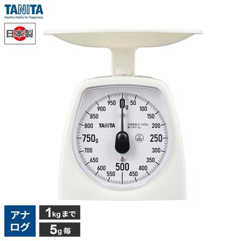 タニタ キッチン量り アナログクッキングスケール(1kg計量) ホワイト KA-441 | はかり 5g単位 アナログ 計り 料理 重さ 上皿秤 1000g 測り 量り 計量 料理 製菓 お菓子作り クッキング 電池不要 かわいい 日本製 5g単位