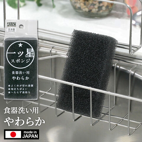 一ツ星スポンジ 食器洗い用 やわらか 黒 AS-027 | 食器用 ASSO スポンジ 泡立つ やわらかめ 傷つけにくい 汚れが落ちる へたりにくい 研磨剤なし 抗菌 防臭 ウレタン 日本製 乾きやすい 衛生的
