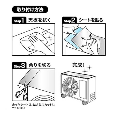 エアコンの室外機の上部に貼りつけて直射日光を反射させる遮熱シート。