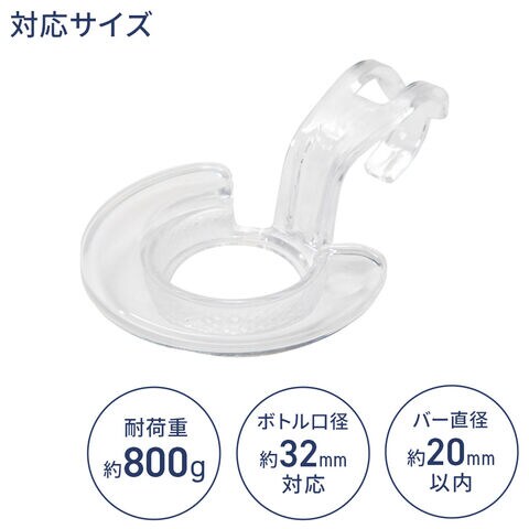 ご注意ご使用前に掛けるバーの太さ、ボトルの口のネジ部の直径、バーの設置状況や強度をご確認ください。