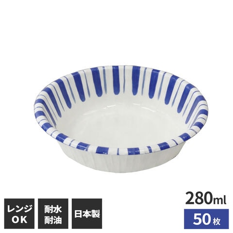 紙皿 十草柄デザインペーパーボウル 280ml 50枚入 | 使い捨て 電子レンジ対応 日本製 かわいい おしゃれ 汁もの 丼もの 小鉢 食器 容器 紙容器 環境にやさしい 介護 給食 業務用 イベント用