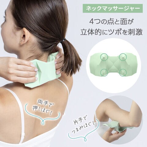 ネックマッサージャーについて4つの点と曲面が立体的にツボを刺激するツボ押しグッズ。