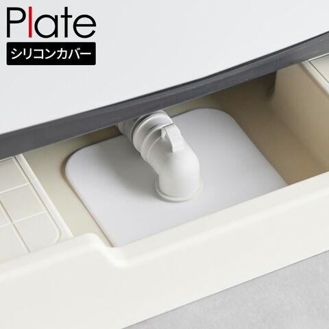 山崎実業 Plate プレート 洗濯機排水トラップ ホコリ防止カバー ホワイト 1423 | 排水口フタ 排水口カバー ホコリ除け ニオイ防ぐ 髪の毛よけ 汚れを防ぐ 洗濯機パンのカバー 防水パンカバー