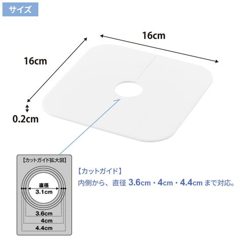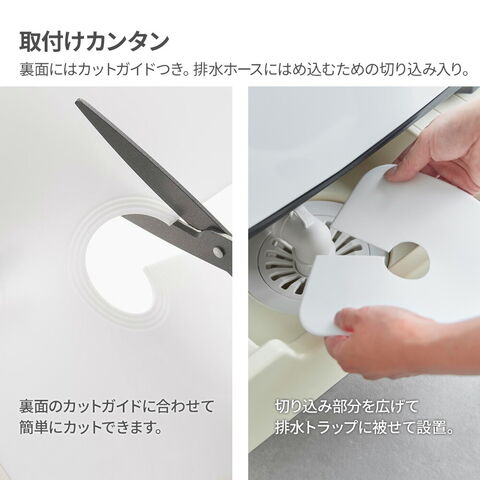 取付けカンタン裏面にはカットしやすいカットガイドがあるので、排水ホースの太さに合わせて簡単にカット可能。